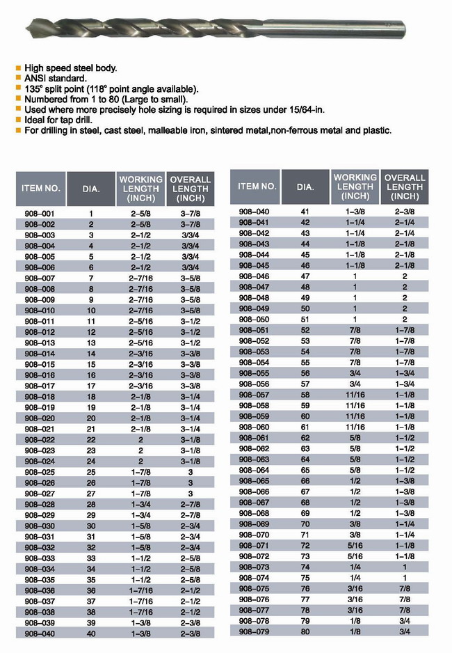 Hss Jobber Length Drill Bits-Wire Gauge Sizes